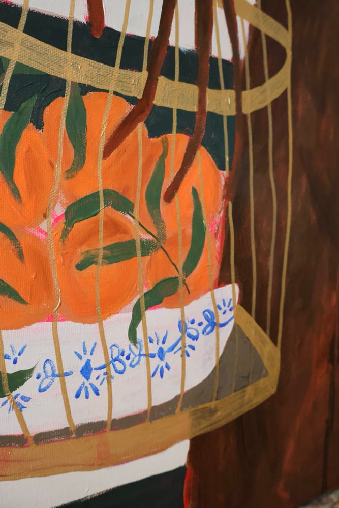 Acrylic, paint marker, ink and oil pastel on canvas