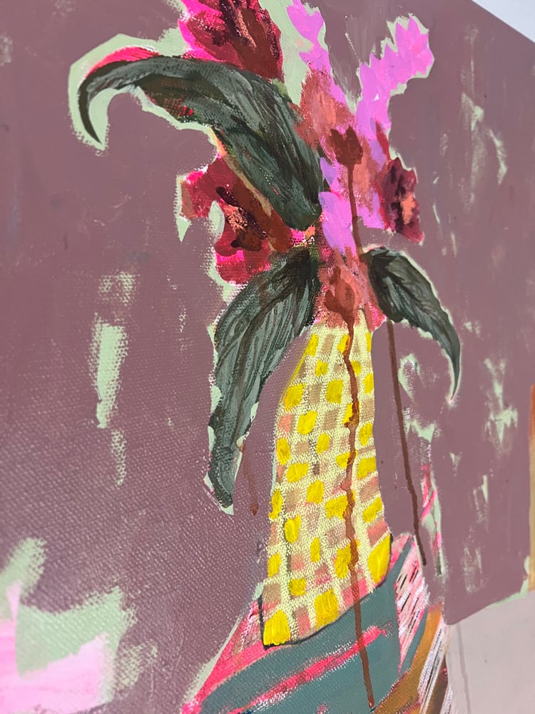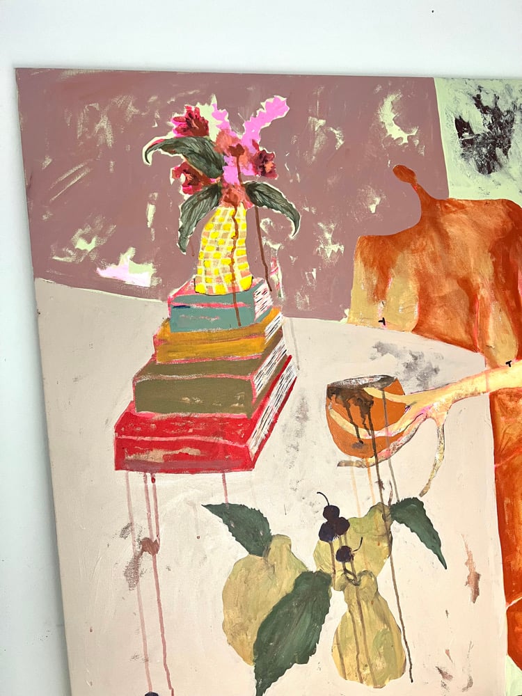 Acrylic, paint marker, ink and oil pastel on canvas