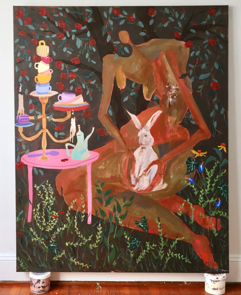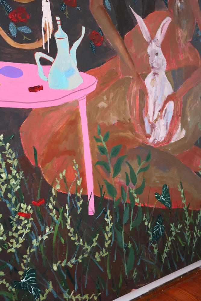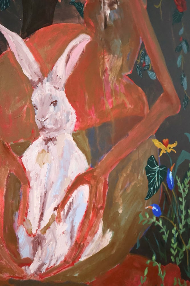 Acrylic, paint marker, ink and gel pen on canvas